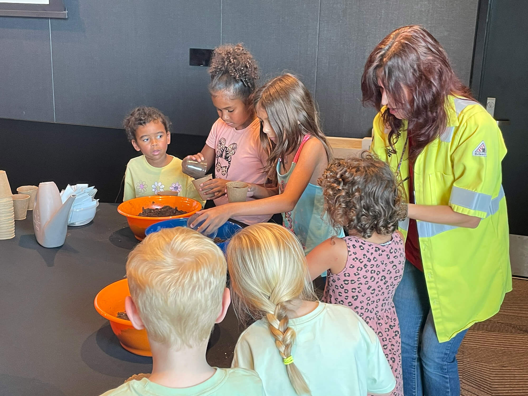 - Mosaic’s Veronica Figueroa helped kids with their plants after the programming.